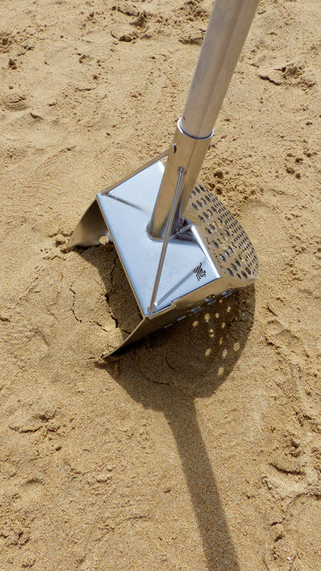 Après 3 années de travail, sand-scoop.com est fier de vous presenter la GOLD RUSH, pelle pour le sable sec et marée basse.